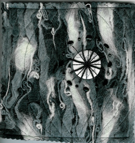 It is now a hanging, but I'm not sure I like it and can't figure out why. Any ideas? The colors are not my usual pallette, but that usually doesn't bother me. The shape really is at an angle, but that I like. I think it is too busy for the left side of my brain.HAPPY NEW YEAR!